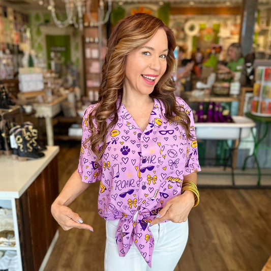 Geaux Icons Purple Button Down