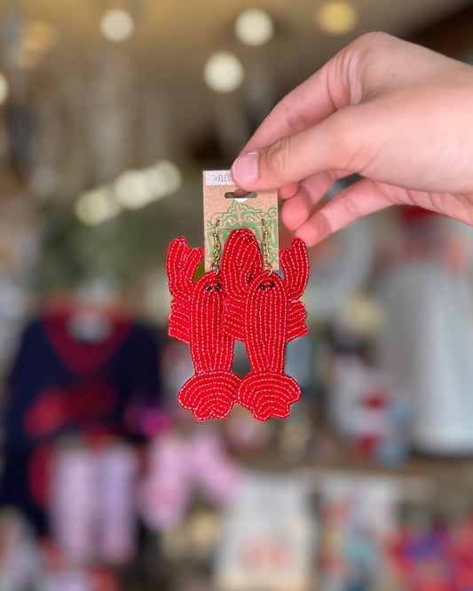 Sold outBeaded Crawfish Earrings, Red