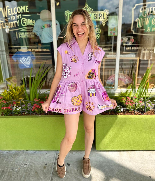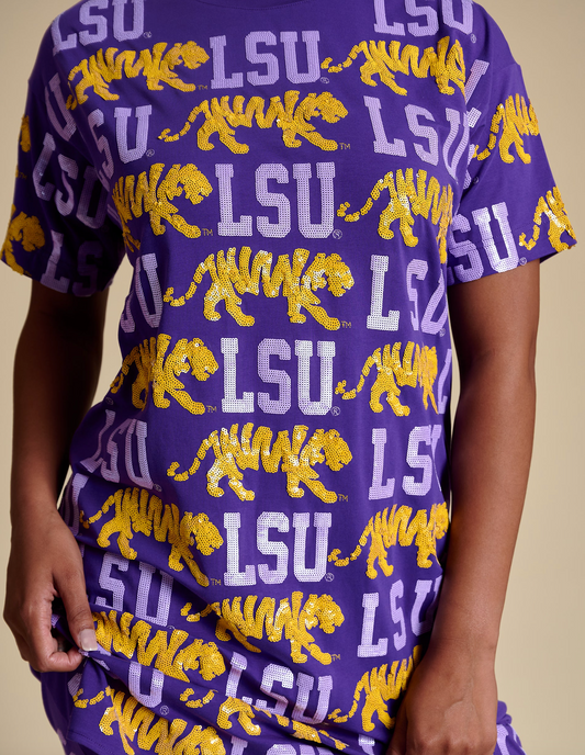 Purple & Gold Sequin Repeat T-Shirt Dress