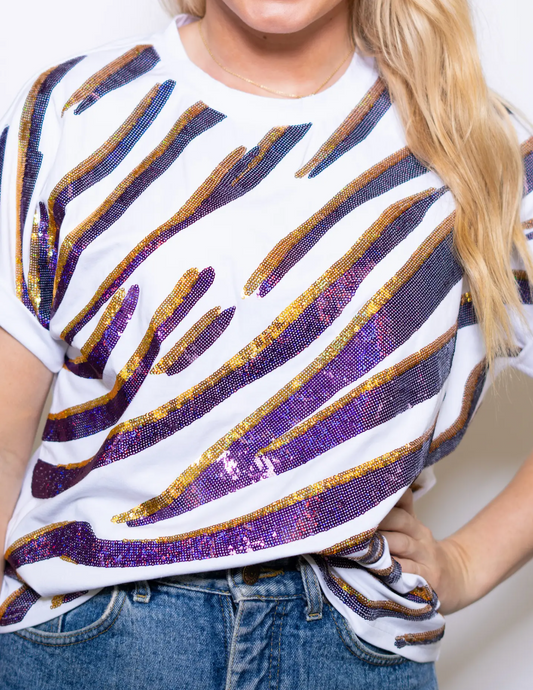 Sold outSequin Tiger Stripe Cuff Sleeve Top