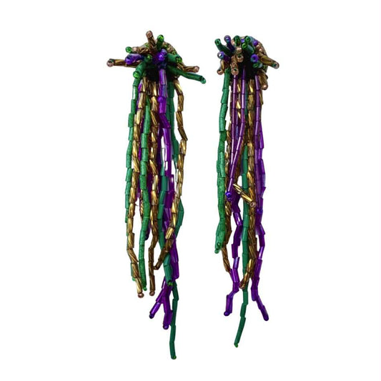 Beaded Dangle Fringe Earrings, Mardi Gras
