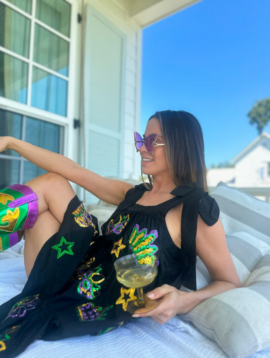 Mardi Gras Rhinestone Stripe Sleeve Button Down
