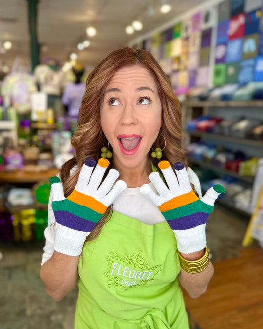 Mardi Gras Texting Gloves, White