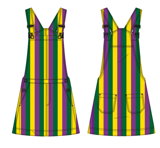 Sold outMardi Gras Striped Overall Dress