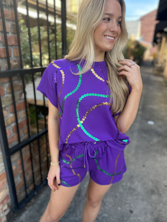 Mardi Gras Sequin Coquette Top