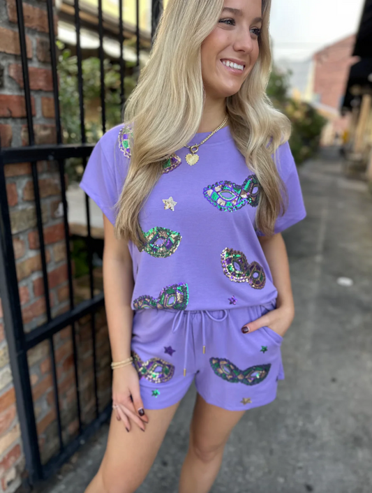 Sequin Mardi Gras Mask Shorts