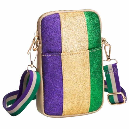 Mardi Gras Sparkle Stripe Crossbody Bag