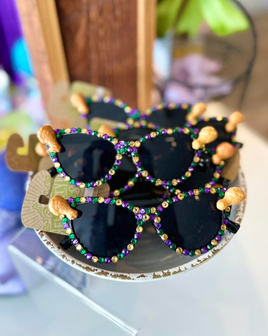 Fried Chicken Bedazzled Mardi Gras Sungalsses