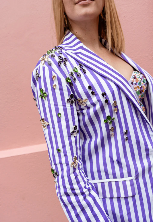 Purple Striped Blazer with Jewels