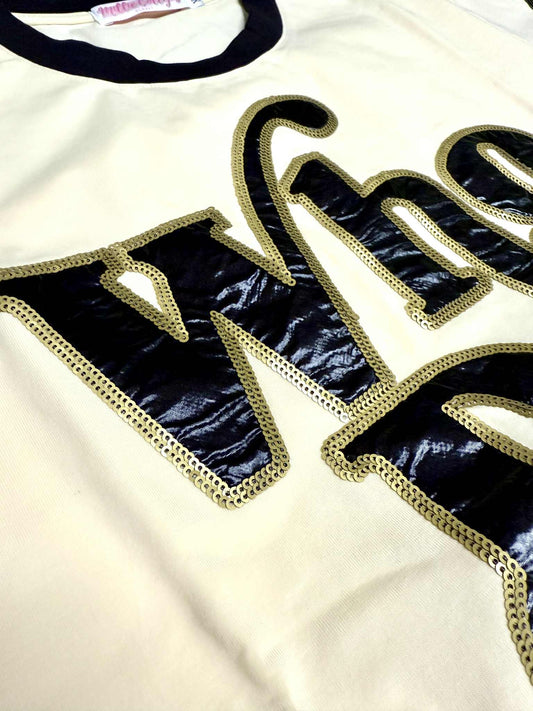 Sold outWho Dat Sequin Stripe Sleeve Top