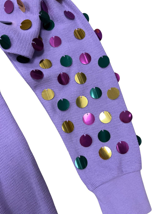 Purple Sweatshirt with Sequin Stripe Sleeve