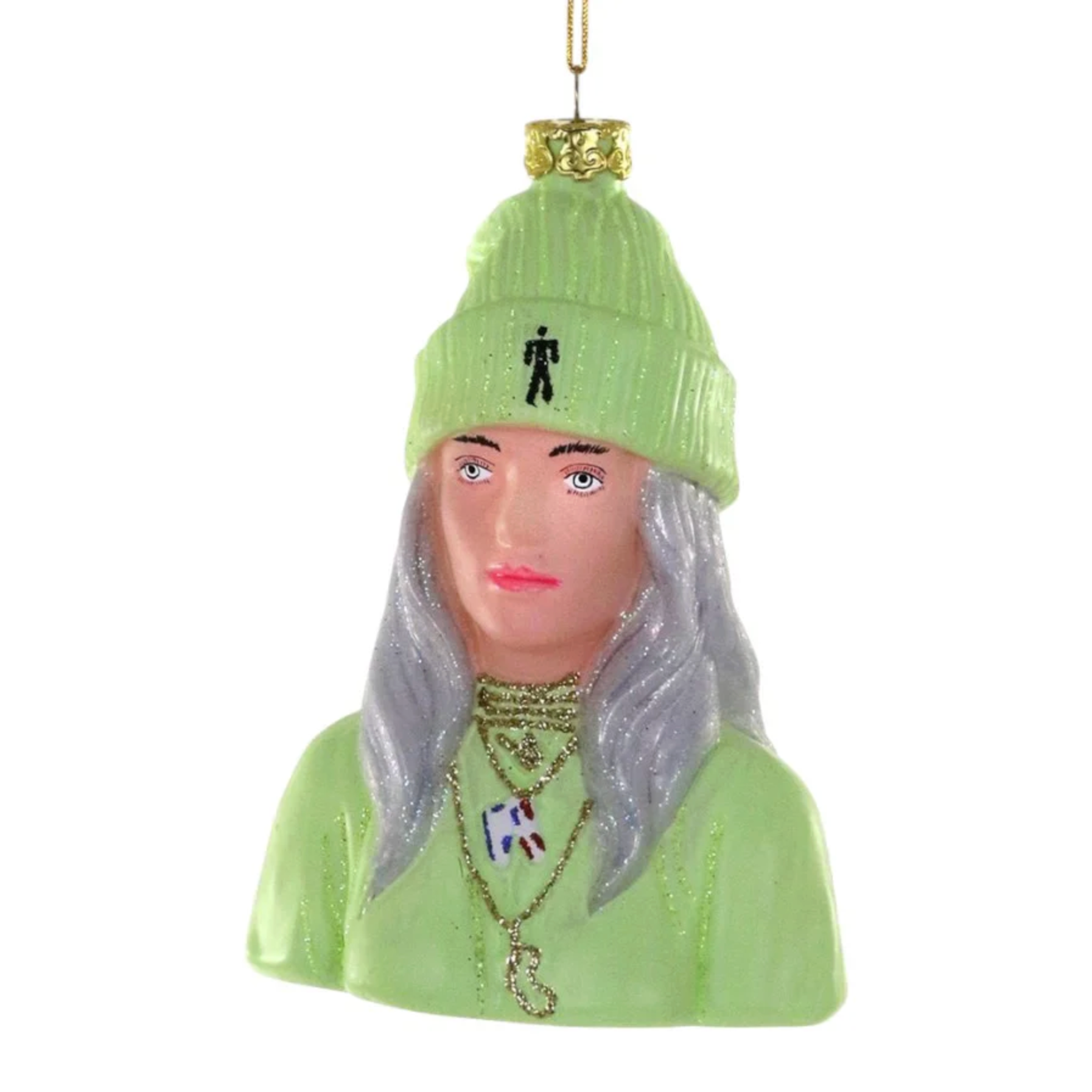 Billie Eilish blown glass ornament. Measures 475 inches.