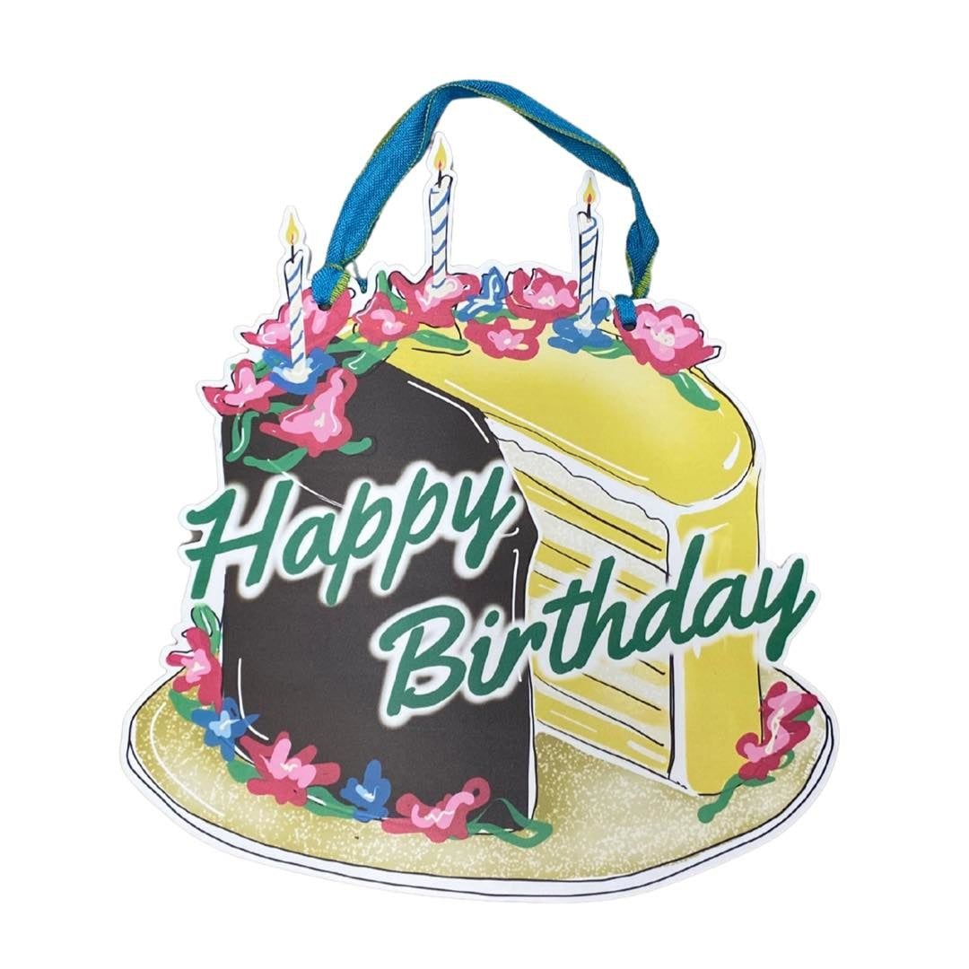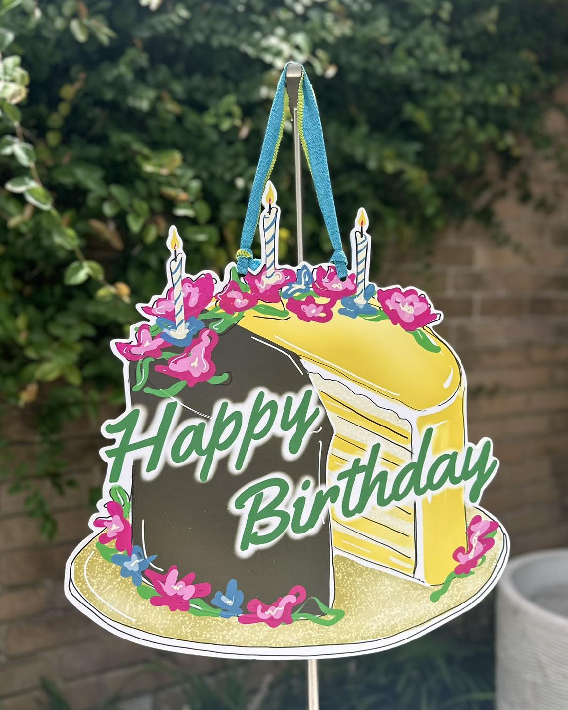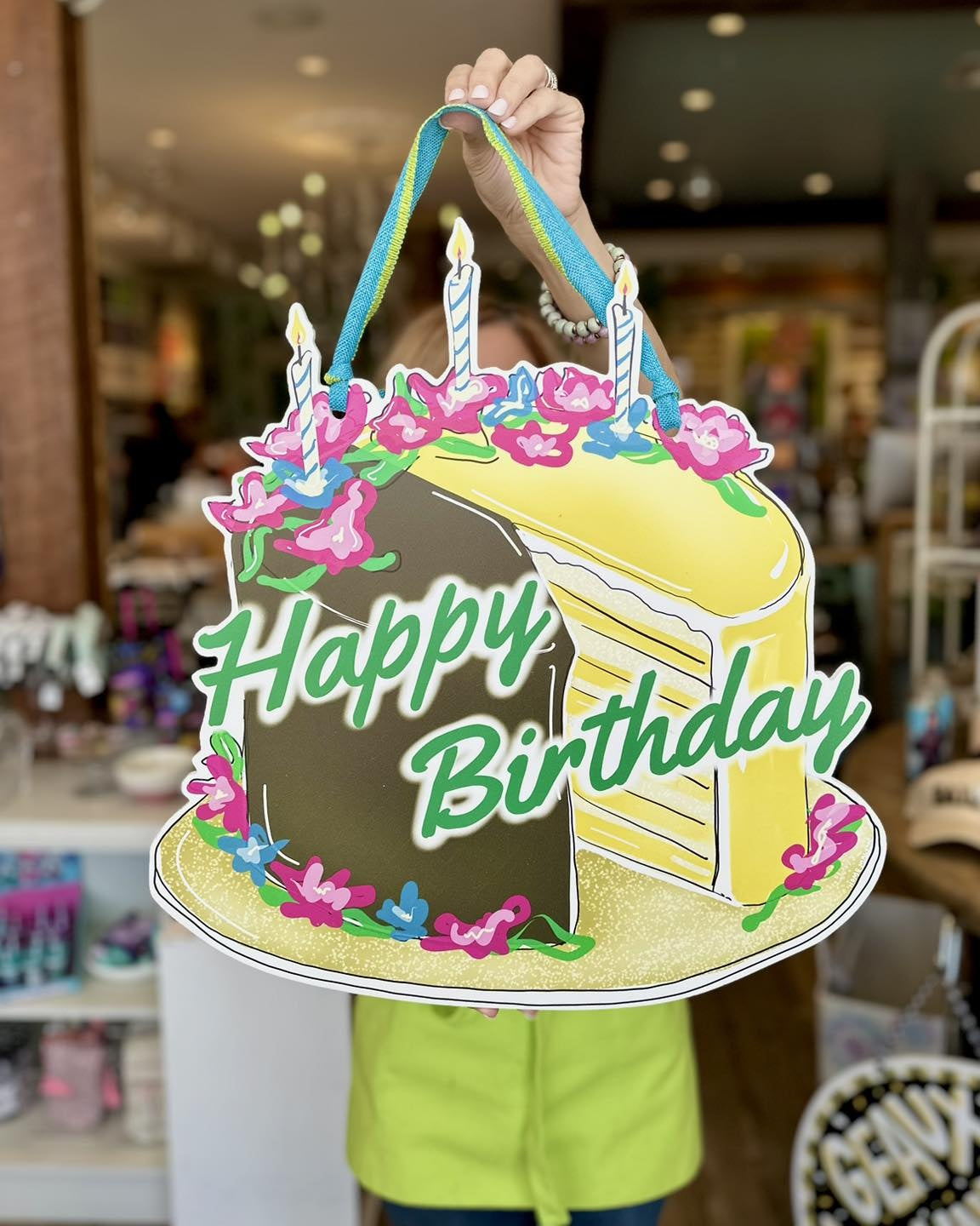 Is it even a birthday worth celebrating in New Orleans without a half lemon, half chocolate doberge cake. Piled high with layers of pudding between each thin layer of cake? I didn't think so! Waterproof and fade proof, this print of a digitally illustrated painting by New Orleans' artist Kristin Malone is printed on a plastic board. Door hanger measures 18.6" tall x 17.5" wide x 1/4" thick. Hangs approximately 22" tall with ribbon.
