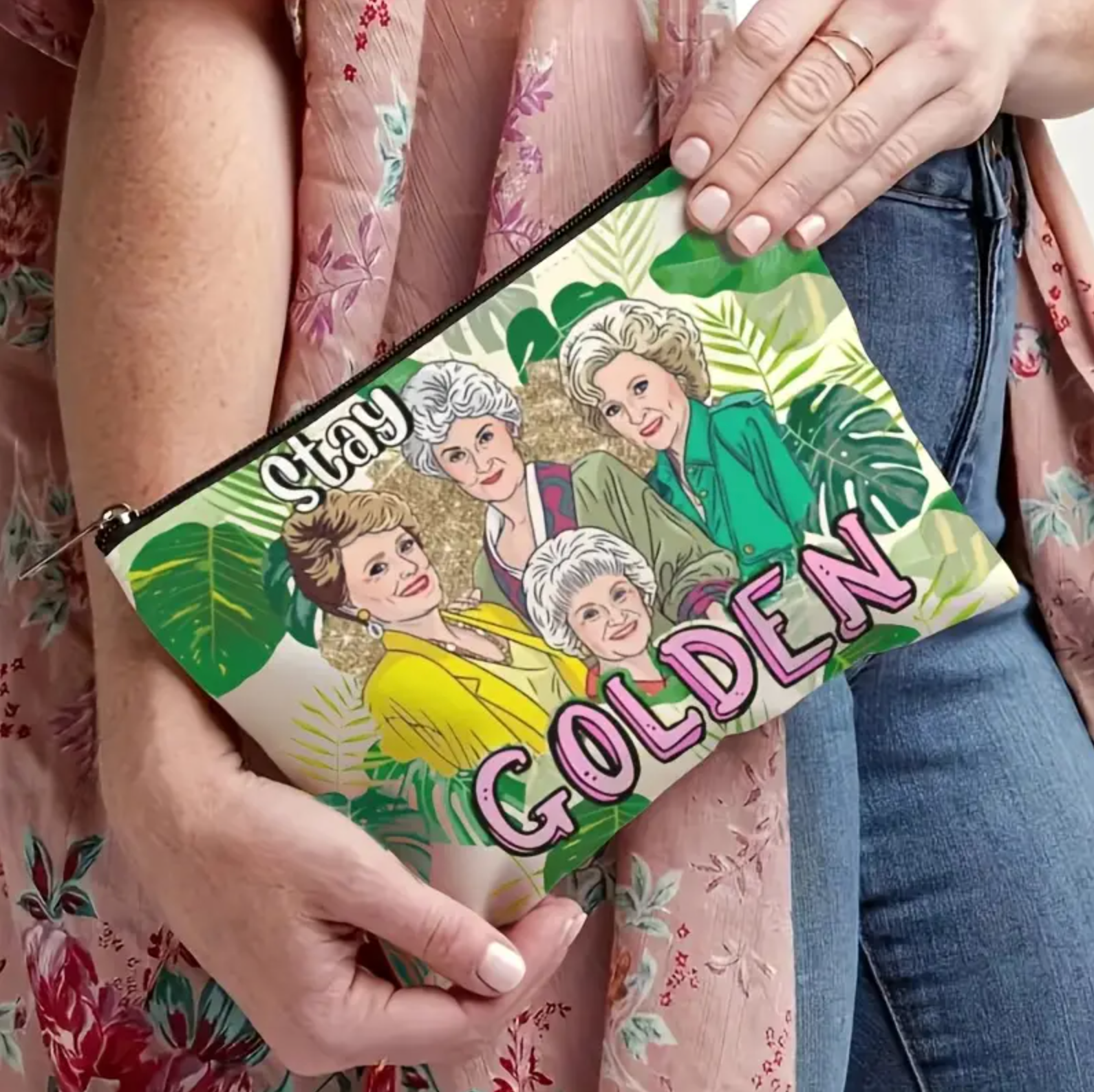 Golden Girls zip pouch. Measures roughly 8.75 inches by 7 inches.