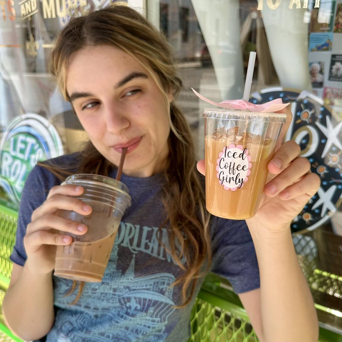 Iced coffee girly hand painted glass ornament.