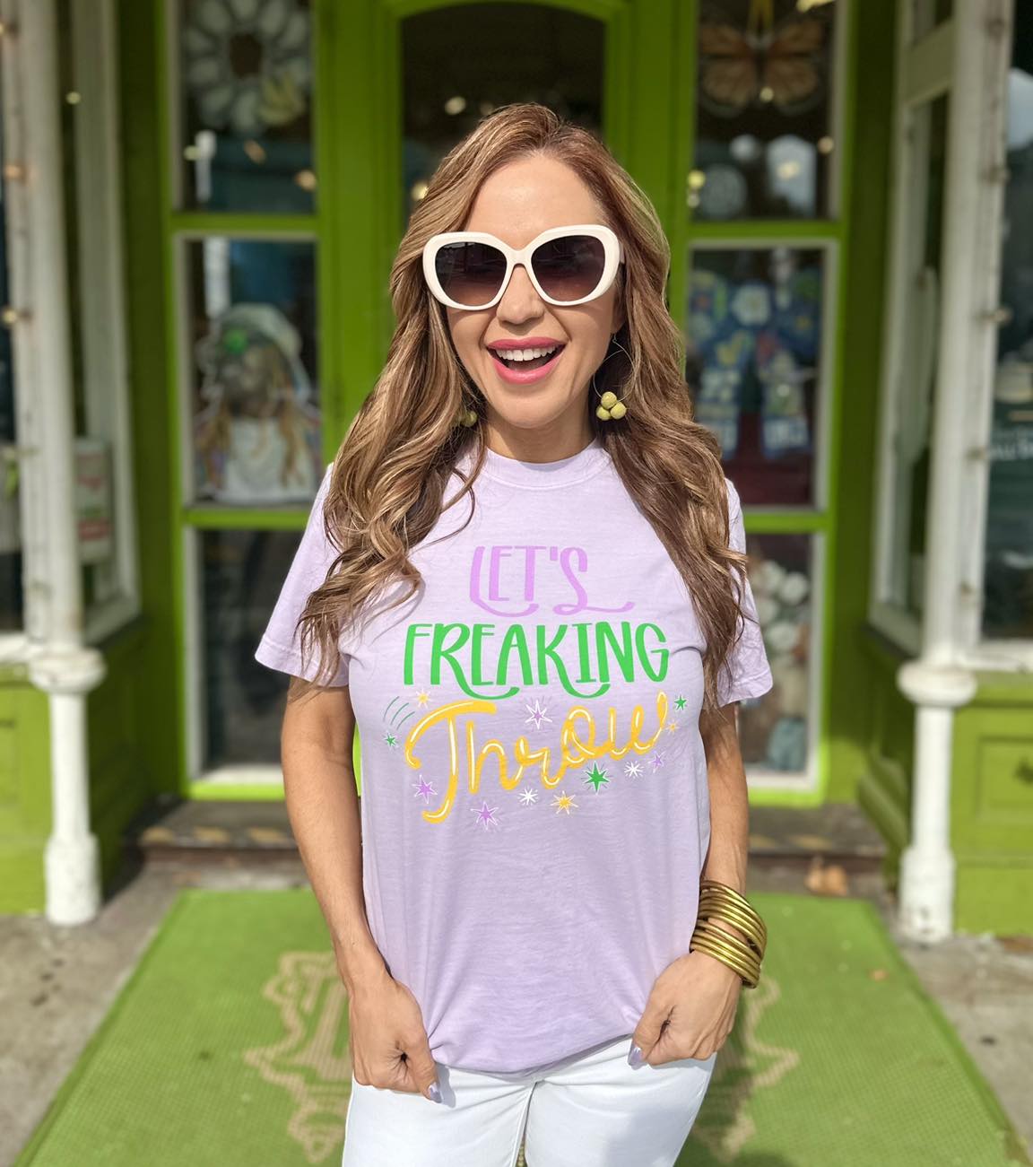 Let's freaking throw Mardi Gras tee. Available in unisex sizes only. Printed on Comfort Colors tees